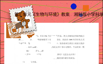 以上为《第3单元《生物与环境》教案 湘科版小学科学四年级下册》的无排版文字预览,完整格式请下载