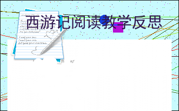 不足之处在于:导读教学中,《西游某某》的艺术成就我虽然在教 学过程中贯穿进去了,但没有明确给学生归纳总结,课后可以通过练 习或其他方式进行补充;还有部分学生阅读不够认真,没有按时完成 阅读任务,课后应该加强检查督促。 《西游某某》阅读教学反思 2