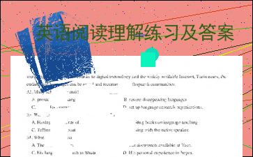 以上为《英语阅读理解练习及答案》的无排版文字预览,完整格式请下载