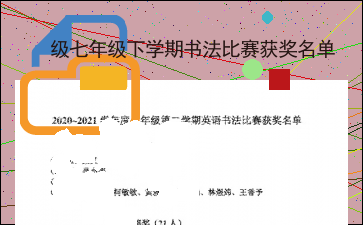2020~2021学年度七年级第二学期英语书法比赛获奖名单