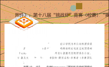 报送要求:1.报名阶段:2023年5月22日***为单位 内容过长,仅展示头部和尾部部分文字预览,全文请查看图片预览。 专项赛作品申报书》(附件1)、《XX学校第十八届“挑战杯”竞赛“揭榜挂帅”专项赛报名信息统计表》(附件2)、作品设计方案(附件3)及活页(附件4);2023年5月31日***为单位向校团委提交作品及其他材料。