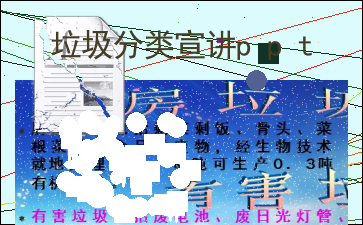 危害:含有机溶剂或大自然难降解的石油化工产品;具有腐蚀性;含氯元素(如漂白剂, 地板洗剂等),对人体有毒;药品含破坏臭氧层物质;杀虫剂中, 约有50%含致癌物质, 有些可损伤动物肝脏。垃圾是放错了地方的财富。回收垃圾不但美化环境,而且垃圾再利用可以节省新资源的开采,从而从根本上减少垃圾。参与环保举手之劳,让我们从身边小事做起,从正确投放垃圾做起吧。 报纸 塑料袋 卫生间废纸 剩菜剩饭 废电池 砖瓦陶瓷书包 玻璃支持垃圾分类,从我做起,谢谢观看[文章尾部最后300字内容到此结束,中间部分内容请查看底下的图片预览]请点击下方选择您需要的文档下载。
