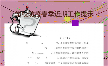 以下为《学校防疫春季近期工作提示(》的无排版文字预览,完整格式请下载