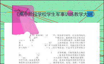 以下为《《高中阶段学校学生军事训练教学大纲》》的无排版文字预览,完整格式请下载