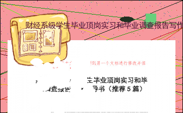 以下为《财经系级学生毕业顶岗实习和毕业调查报告写作指导书(推荐5篇)xiexiebang.com》的无排版文字预览,完整格式请下载