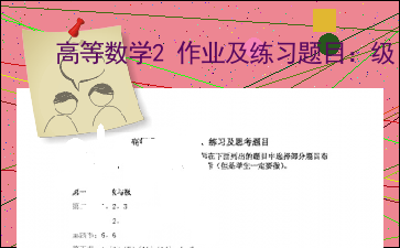 以下为《高等数学2作业及练习题目:级》的无排版文字预览,完整格式请下载