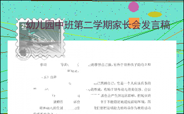 以上为《幼儿园中班第二学期家长会发言稿》的无排版文字预览,完整格式请下载