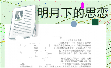 而曹植此作的第二句“流光正徘徊”亦是极为优美动人的句子。无疑,高楼上的思妇,正因苦苦思念远方的丈夫而久久徘徊,而月光居然似乎也通人情、知人意,也跟着她的身影徘徊,仿佛是舞台上专门打给她的一束追光。而且这束追光的出现在先,读者先看到明月,顺着这束光,才看到女主人公。这是明月意象的一个飞跃,从此它超越了无情的自然事物的躯壳,而具备了有 内容过长,仅展示头部和尾部部分文字预览,全文请查看图片预览。 怨。诗歌结尾,思妇的思念就象那缕飘逝的轻风,“君怀良不开”,她到哪里去寻找归宿呢?结尾的这缕轻风与开首的那道月光共同构成了一种幽寂清冷的境界。
