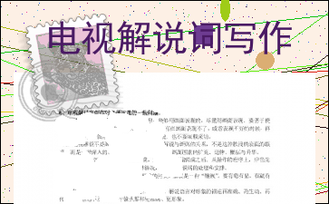 电视解说词的定义:电视解说词是电视语言的主要构成因素之一,是电视节目制作中一种重要的创作手段和表现因素。
