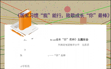 以上为《《居家习惯“我”能行,致敬成长“你”最棒》主题班会》的无排版文字预览,完整格式请下载