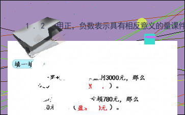 1.如果+3000元表示盈利3000元,那么-200元表示( )。亏损200元2.如果-780元表示亏损780元,那么+400元表示( )。盈利400元选一选1.华某某在长途汽车站的西南方向500米某某,记+500米,那么丽丽家在长途汽车站的东北方向500米某某 内容过长,仅展示头部和尾部部分文字预览,全文请查看图片预览。 亏损是具有相反意义的量。1.用正,负数表示盈亏情况:这节课你们都学会了哪些知识?2.借助直线理解正数和负数的意思(1)向东走2千米和向西走2千米是具有相反意义的量。(2)用正负数表示两个相反的方向。(3)如果向一个方向行走的路程用正数表示,那么向相反方向行走的路程就用负数表示。直线上正负数的排列规律:1.以0为基准,0右边的数都是正数,0左边的数都是负数。对应的正,负数到0点的距离相等。2.正数都是大于0,负数都小于0。这节课你们都学会了哪些知识?[文章尾部最后300字内容到此结束,中间部分内容请查看底下的图片预览]